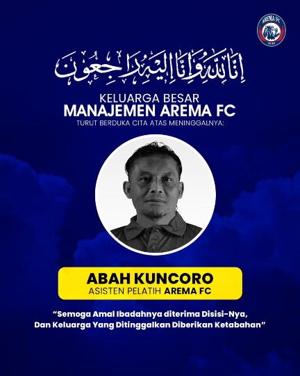Sementara Arema FC melalui postingan Instagram juga menyampaikan duka mendalam atas meninggalnya Abah Kuncoro.