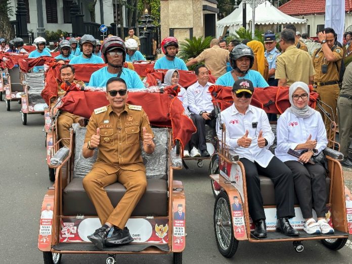 MALANGVOICE- Sebanyak 200 bantuan becak listrik dari Presiden RI Prabowo Subianto diserahterimakan kepada Pemkot Malang. Becak itu disalurkan ke penerima di Balai Kota Malang, Selasa (20/1).