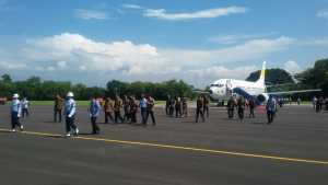 Presiden beserta rombongan menggunakan pesawat Boeing 737 – 400 TNI AU, dengan Pilot Letkol Pnb Zaelani.