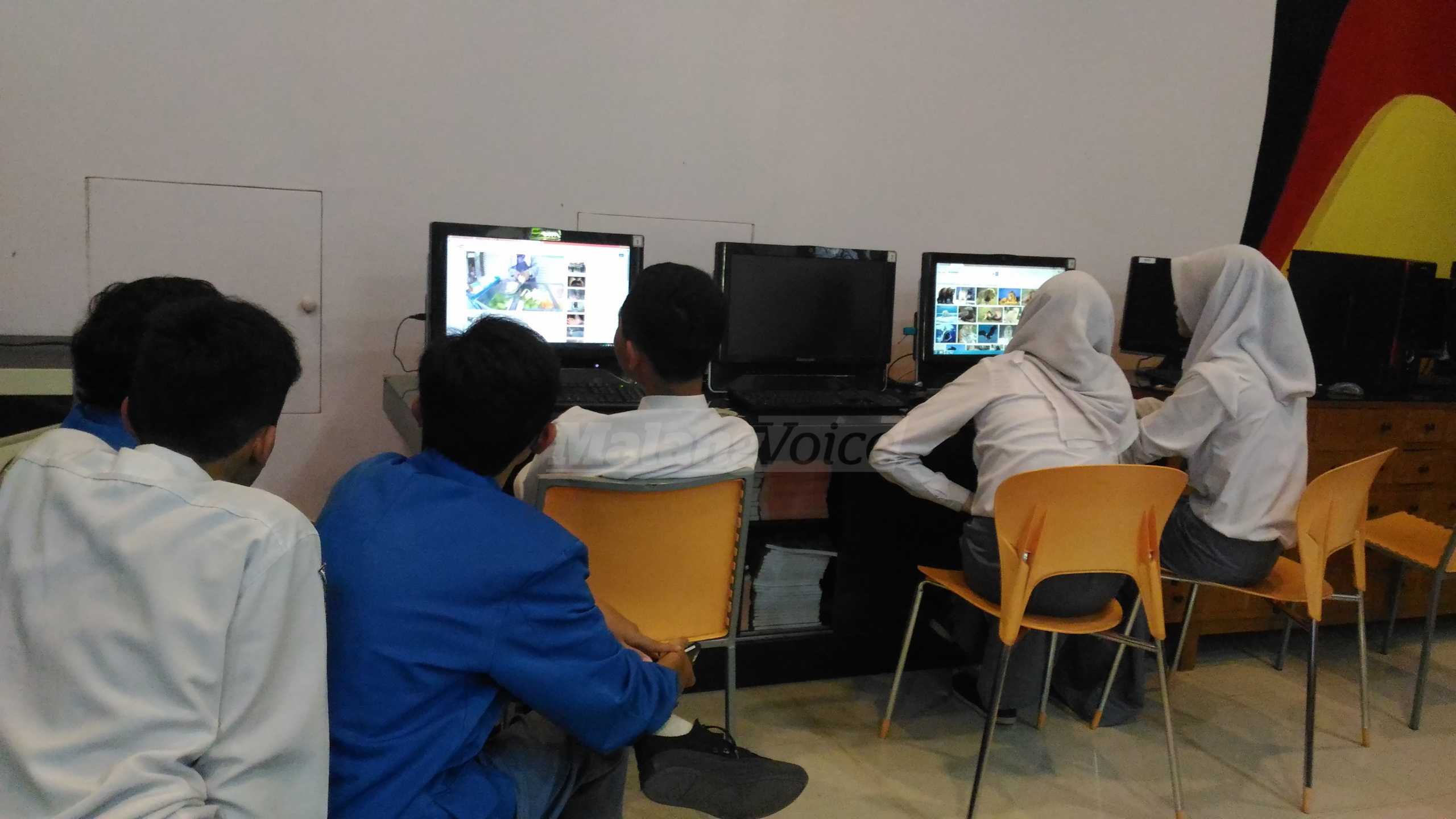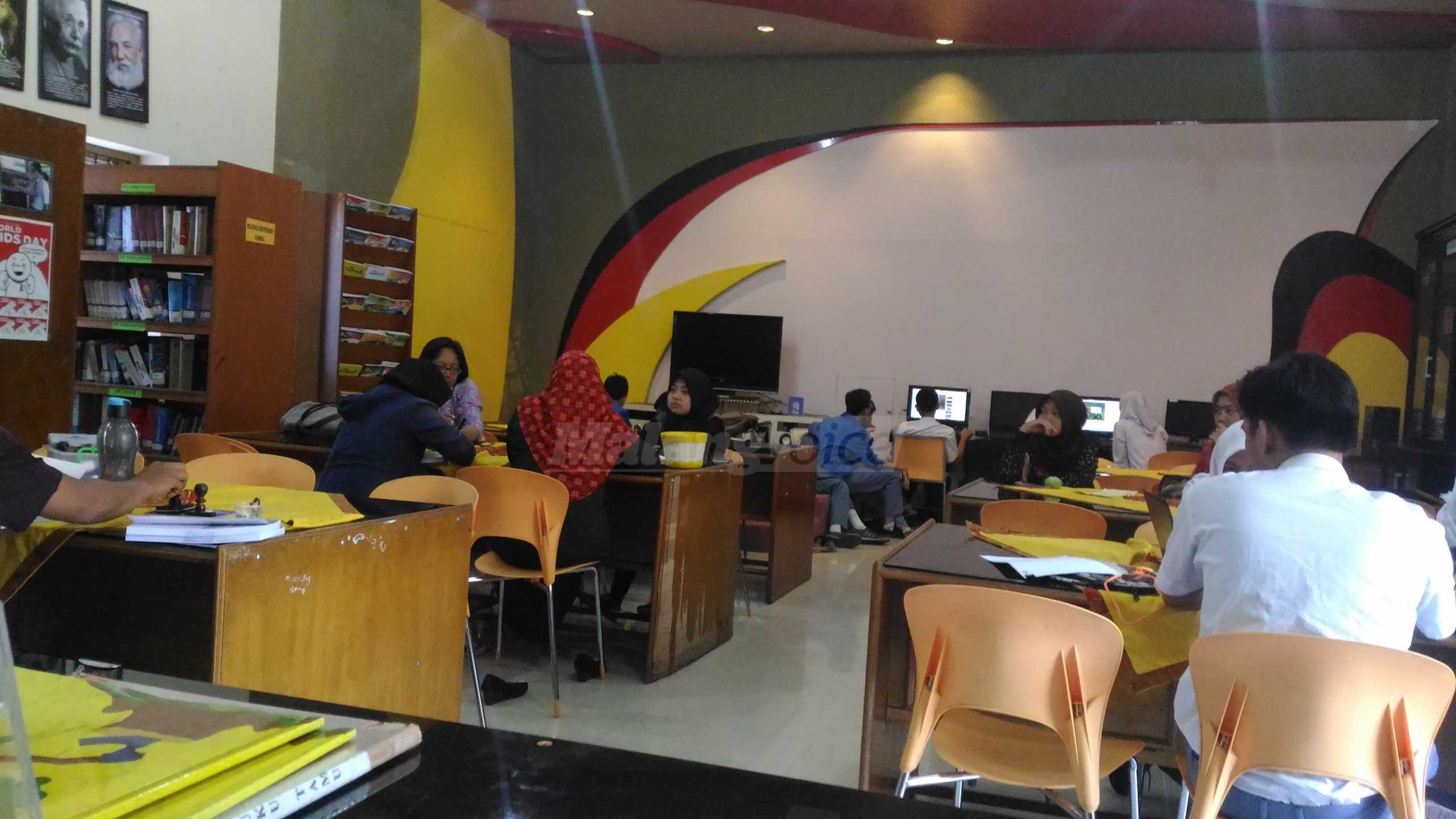 MALANGVOICE – Untuk meningkatkan minat siswa dalam membaca, SMAN 5 Malang menyulap tata ruang perpustakaan bernuansa kafe. Selain cat warna-warni, perpus ini dilengkapi fasilitas internet, komputer dan multimedia lainnya.