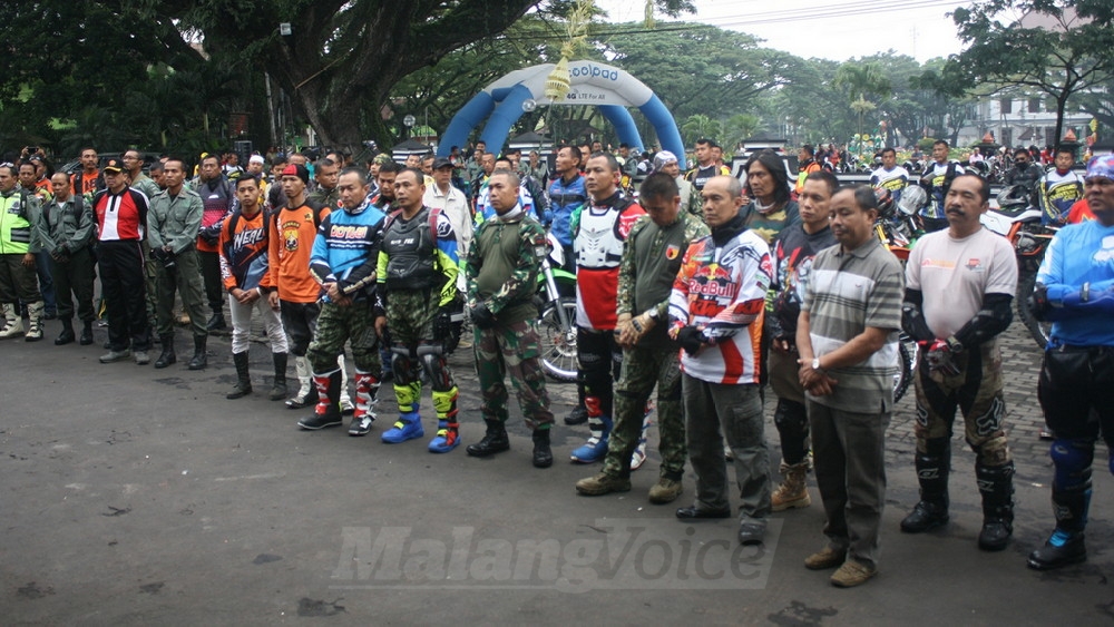 Personel TNI, Polri dan komunitas motor trail Malang bergabung dalam acara itu. ”Utamakan keselamatan, dan jaga diri selama perjalanan. Ikuti Rute yang telah ditentukan panitia, agar selama perjalanan diberi kelancaran dan keselamatan,” kata Pangdam V dalam arahannya kepada para peserta.