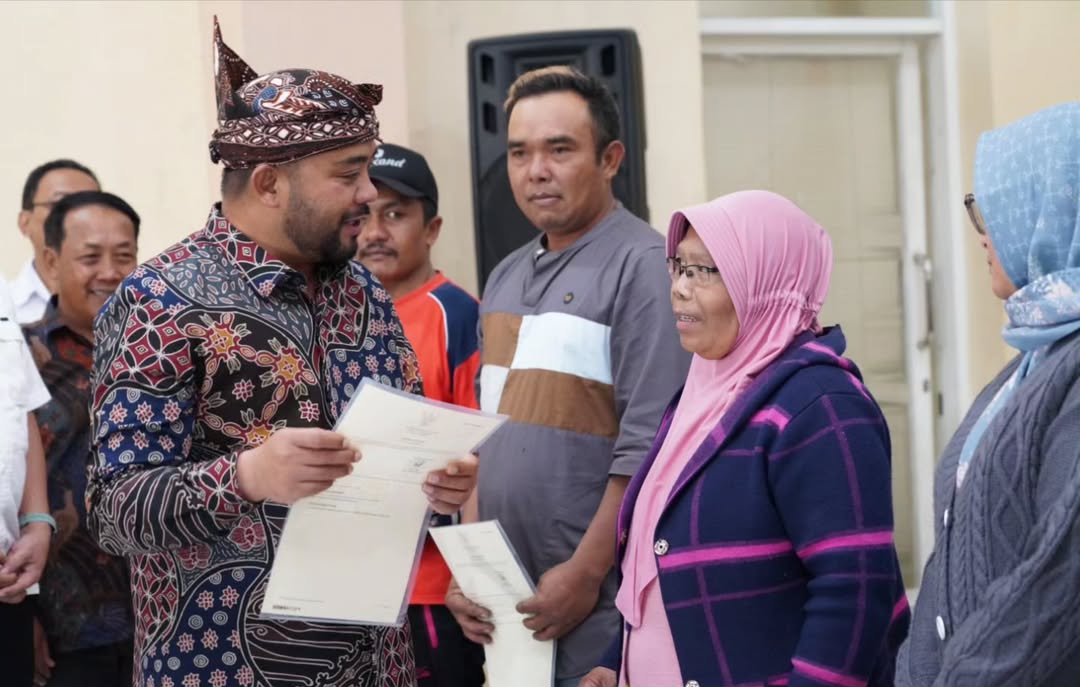 “Mohon dijaga dengan baik, jangan dijual atau dipindahtangankan dulu sebelum 10 tahun. Karena di dalam sertipikat ini terdapat data dan fasilitas penting yang menjadi aset panjenengan semua,” pesannya kepada warga penerima.