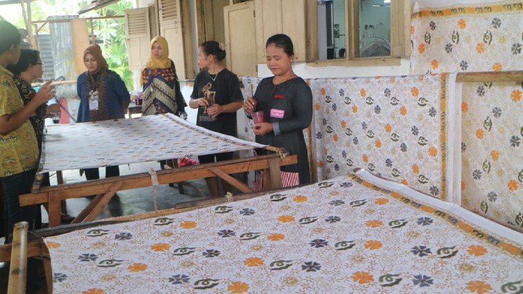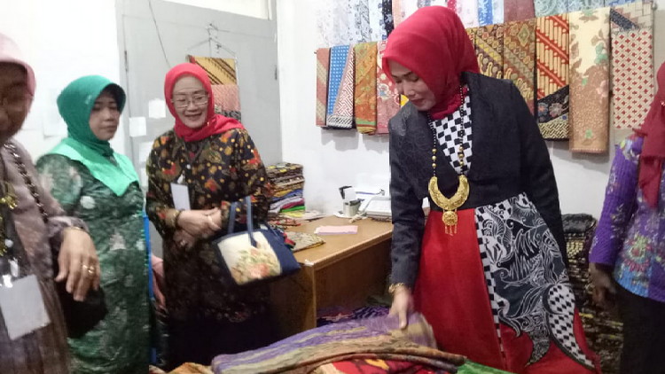 Widayati Sutiaji bersama rombongan Ketua TP PKK dari daerah lain, pada kesempatan itu mengunjungi Kampung Batik Laweyan Surakarta dan melihat proses pembuatan hingga pemasaran di dua produk yakni Batik Lengo dan UMKM Batik UNI.