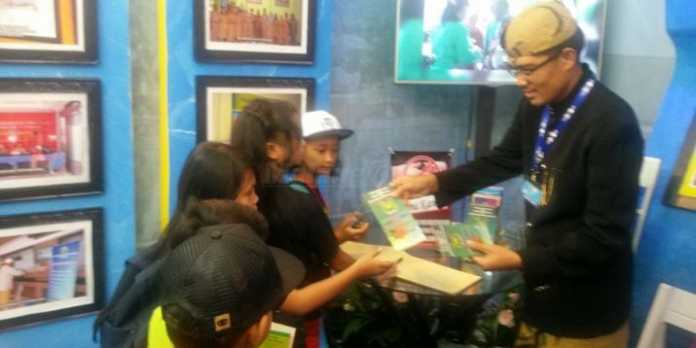 Dwi Cahyo, Kepala Bidang Penagihan Dispenda Kota Malang, selaku pemandu area stand kota Malang, juga mengedukasi para siswa dengan visualisasi foto pelayanan publik yang ada di kota Malang.