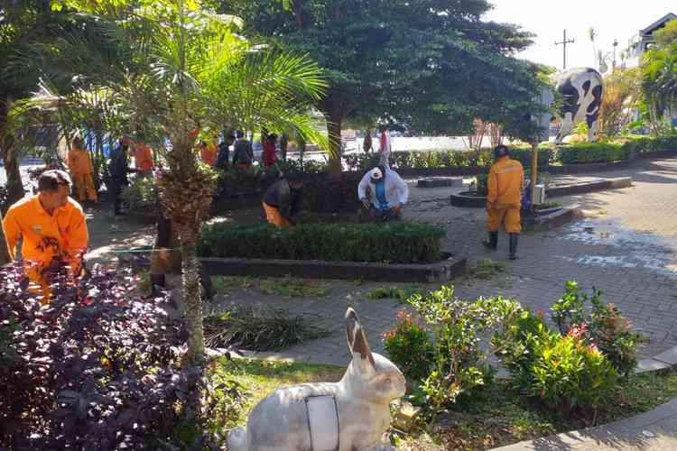 Mulai dari penanaman bunga yang rusak karena terinjak-injak, fasilitas bermain ayunan yang rusak langsung diperbaiki, bersih-bersih bersama, hingga pengecatan kembali Alun-Alun Kota Batu.
